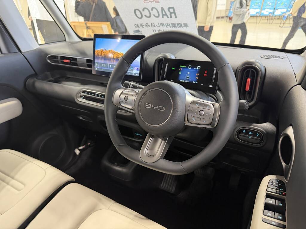 車載ディスプレイは10.1型。他のBYDの車両から見るとやや小ぶりだが、これは視界確保を優先した結果とのこと。軽自動車はパッケージングが極めてシビアであり、安全視界とのトレードオフがある。
