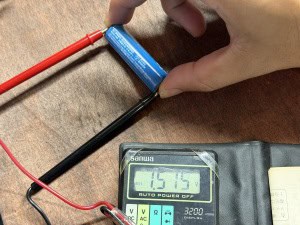 乾電池型のリチウムイオン電池は、放電中は1.5V前後を安定して出力する。筆者がダイソーで購入した製品も1.5V前後の出力であり、定格出力が1.2Vの充電式乾電池よりも安定して使える。