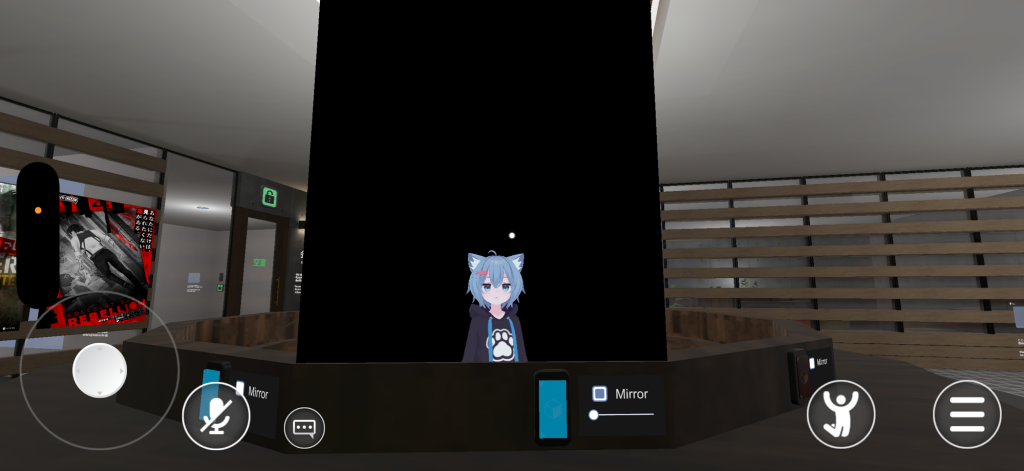 もちろん、通常のゴーグルのように3DoFはアプリ内で認識しないものの、大画面で表示できるだけで、通常のスマホ画面では見落としがちなアバターの細かい動きや背景のライティングまで確認でき、没入感は段違い。