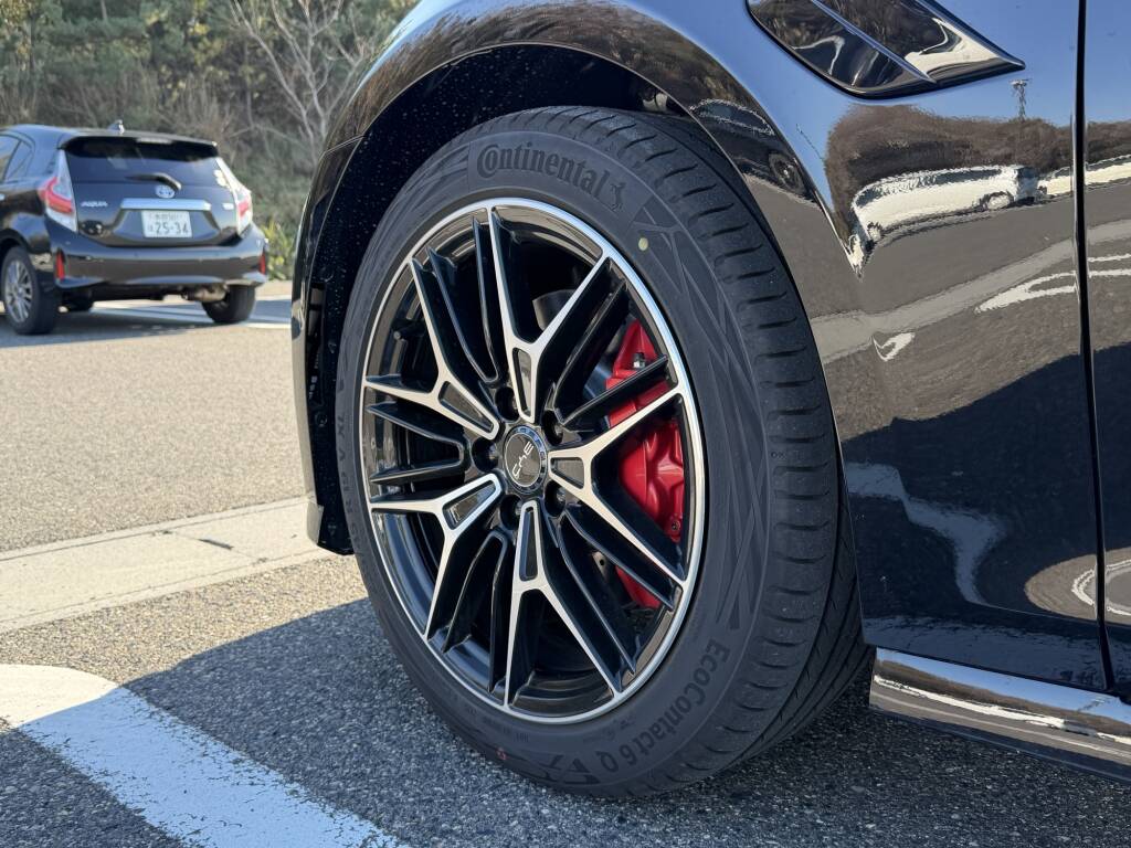 新しいデザインの標準ホイールと赤のブレーキキャリパーが印象的