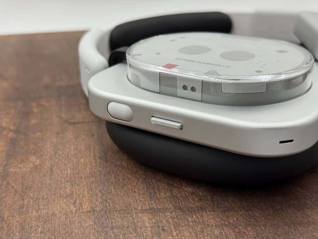 多くの最新ヘッドホンはタッチ式のコントロールを採用しているが、Nothing Headphone (1) は 物理ボタン+ローラー式の音量調整 を採用。タッチ式の操作インターフェイスは一切採用していない。