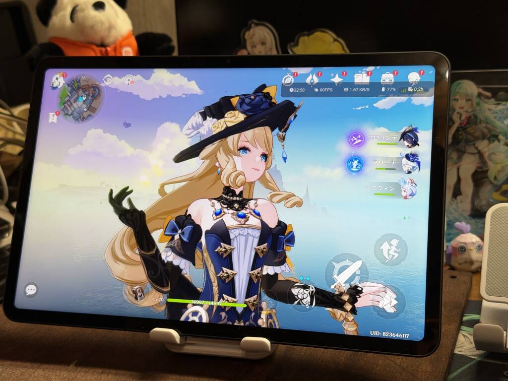 実際、原神や崩壊スターレイル、学園アイドルマスターといった3D ゲームや高負荷処理を伴うアクション系タイトルも高画質設定でしっかり動作。挙動の安定性では同社のREDMAGICシリーズには劣るものの、7万円台のタブレット端末としてはかなり高い水準にあると感じた。