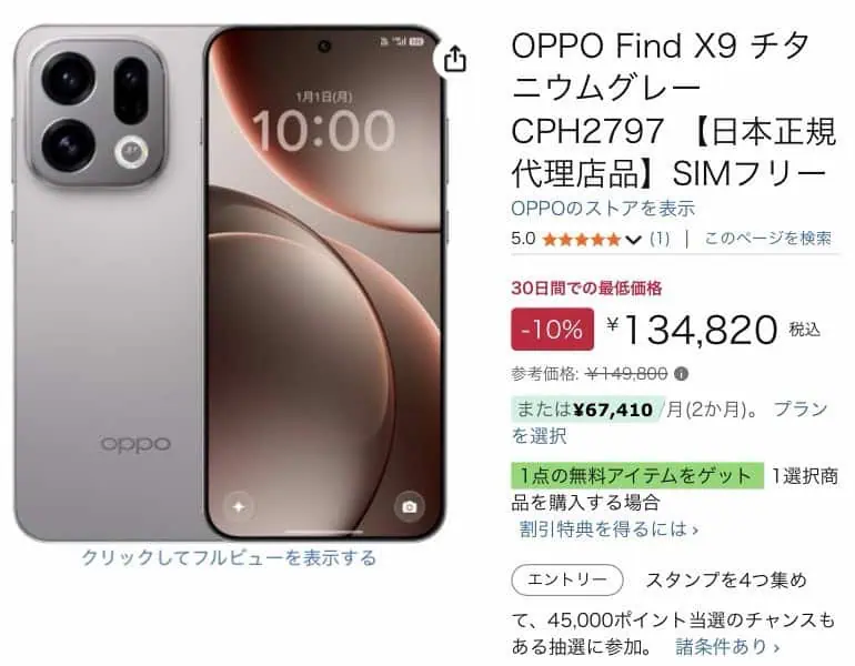 OPPOの最新フラッグシップ スマホ「Find X9 」が、発売からわずか1週間でAmazonにて10%オフとなっている。