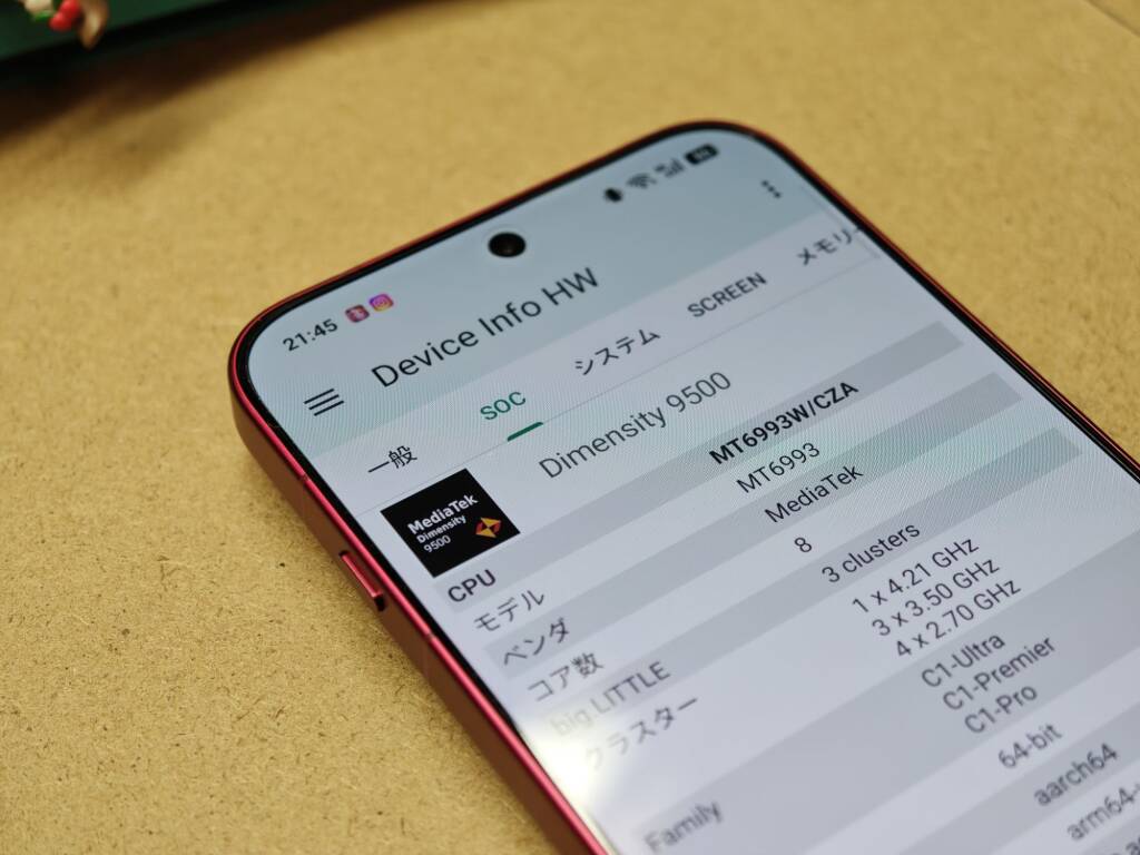プロセッサはDimensity 9500を採用している。3nm世代最新のプロセッサであり、Snapdragon 8 Elite Gen 5と競合する。搭載メモリは16GBと必要十分。 冷却性能も大容積の冷却機構を搭載しており、プロセッサーとの組み合わせもあってか、長時間のゲームも問題なく遊ぶことができた。