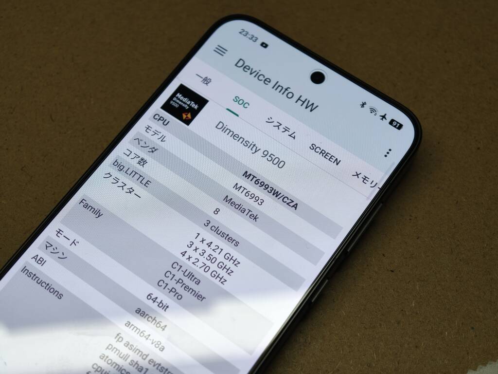 また、Dimensity 9500が新しすぎてアプリ側が対応しないことによる最適化不足もあり、フルで性能を発揮できるにはもう少し時間がかかりそうな印象もあった。