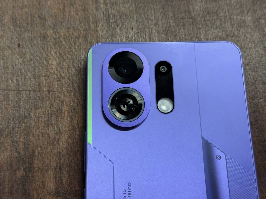空冷ファンを備えるスマートフォンは過去にいくつか存在したものの、今ではかなりの少数派。現行製品ではゲーミングに特化した「nubia REDMAGICシリーズ」が空冷ファンを備える製品として著名だ。OPPO K13 Turboシリーズ共通の特徴が空冷ファン。配置はメインカメラに連なる形で並んでいる。