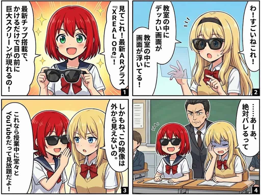 学生時代にあったら絶対サボっていた!? スマホ接続型ARグラス「XREAL One」を題材に、ガジェット好きの2人が最新スマートグラスの魅力と“授業中に使ったら危ない理由”をコミカルに紹介。X1チップ搭載で実用レベルに進化したXREALのリアルな面白さを描く第4話。 -