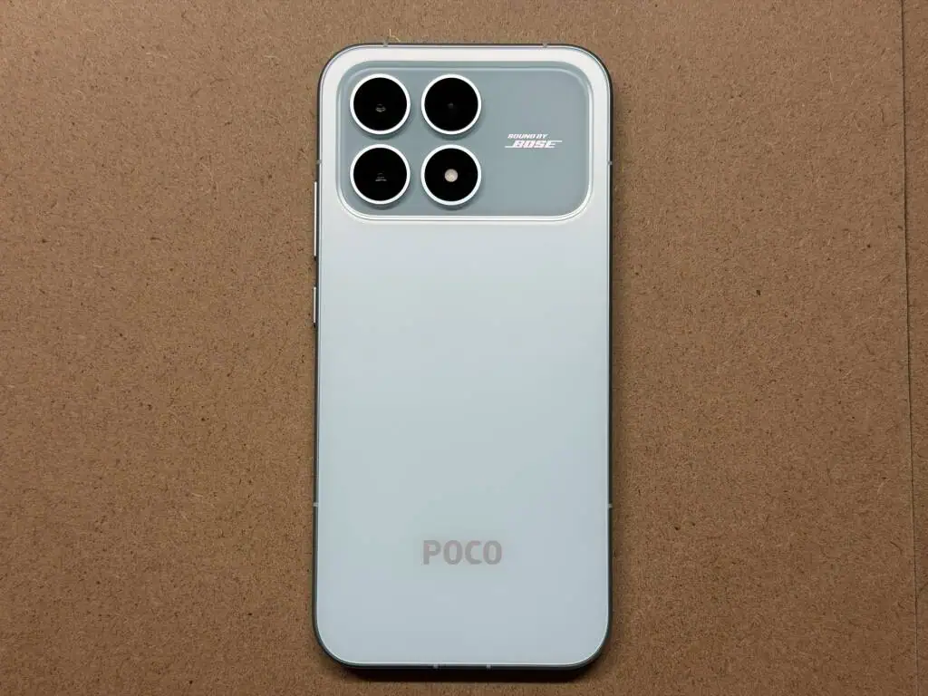 POCO F8 Proはガラス製のバックパネル、金属製のフレームを採用したことで安物感を感じさせない質感を得た。艶消し加工が施されており、POCOブランドでも高級感を備える仕上がりだ。