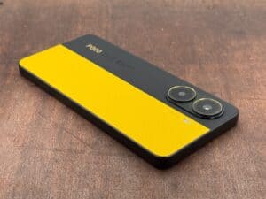 POCO X7 Proは3色展開されるが、今回は「イエロー」をチョイス。カメラ部のゴールドがいいアクセント