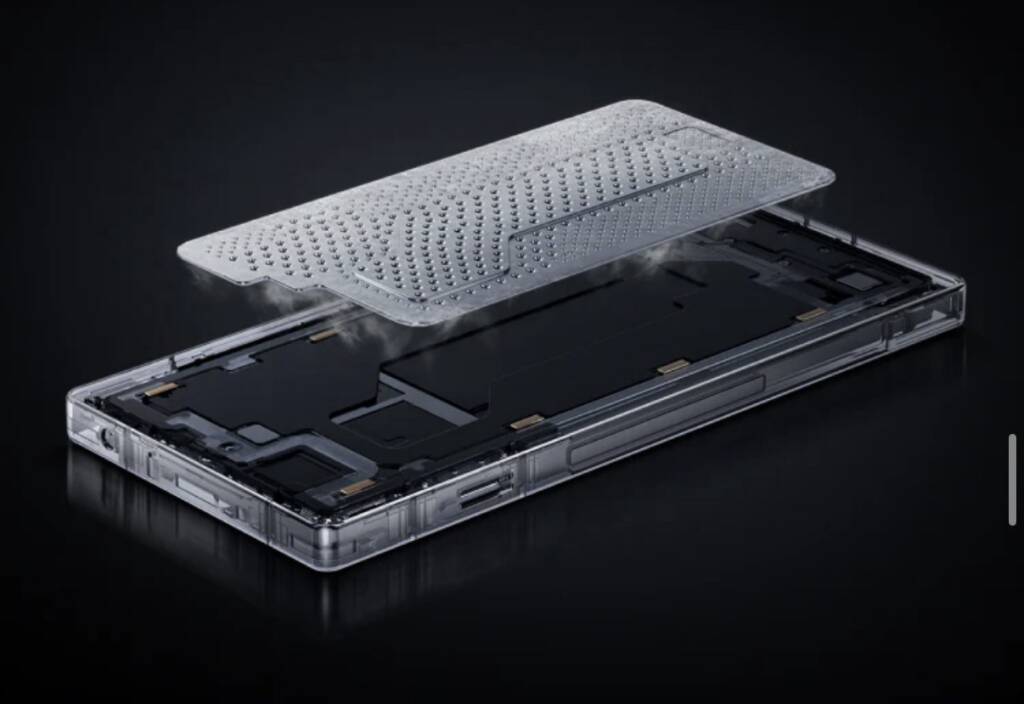 これに13000mm²超の大型ベイパーチャンバー、液体金属による冷却機構に加え、最大24000RPMの冷却ファンを内蔵。端末の熱を内部に敷き詰めたベイパーチャンバー、水冷ユニット、空冷ファンの順に移動させることで、発生した熱を効率よく排出する設計となっている。