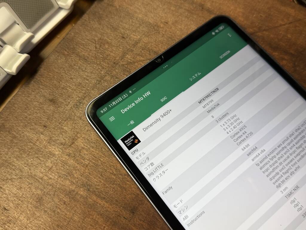 Xiaomi Pad Miniはプロセッサに「Dimensity 9400+」を採用。Androidタブレット端末としては圧倒的なパフォーマンスを発揮できる。タブレット端末としては数少ないフラグシッププロセッサを採用した端末だ。