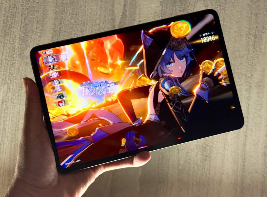 厚さは6.9mm、重量は370gとXiaomi Pad Miniよりは重いものの、ディスプレイはベゼルレス設計で9.06のOLEDパネルで、最大リフレッシュレートは165Hz。このクラスでOLEDパネルを採用したタブレット端末は少なく、画面のコントラスト比などは一線を画す。