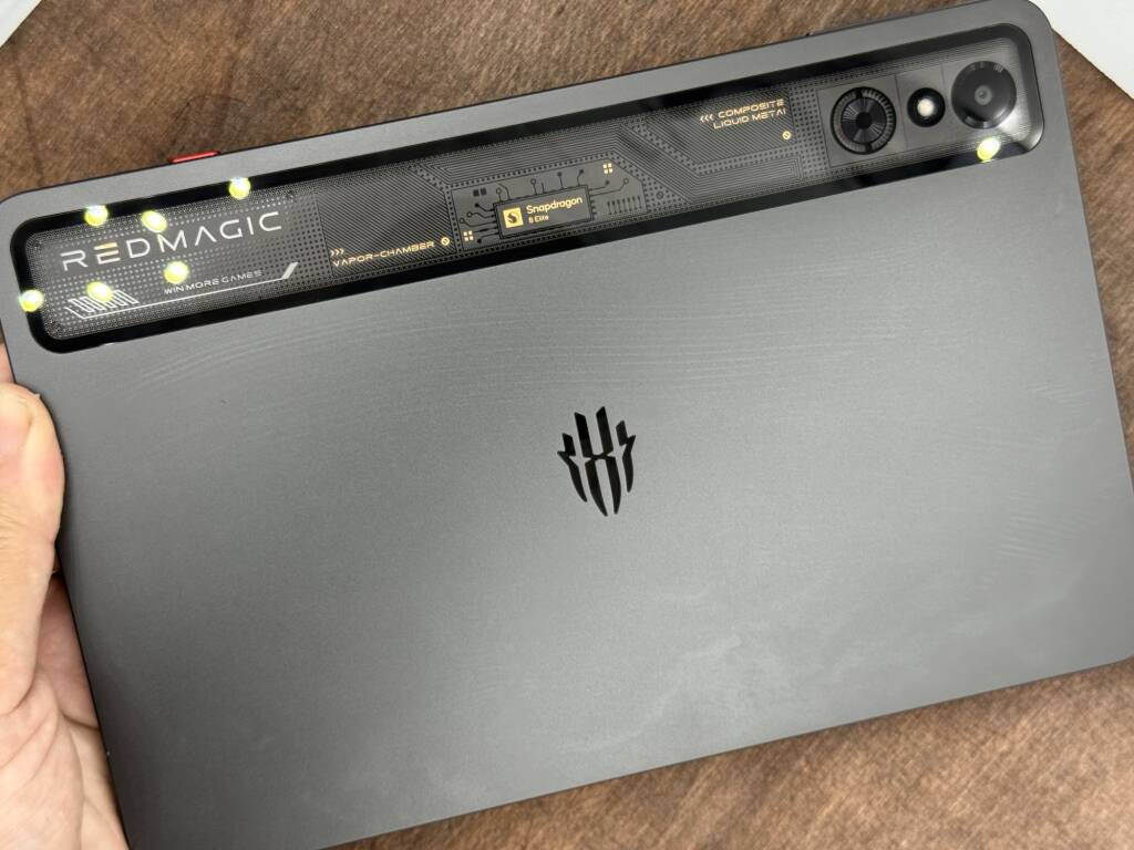 一方、REDMAGIC Astraは「ゲーミングタブレット」の名に恥じない存在感。金属フレームをベースに、ライティング演出やSnapdragonロゴを備えるなど、デザインの時点で“強そう”な印象を与える。