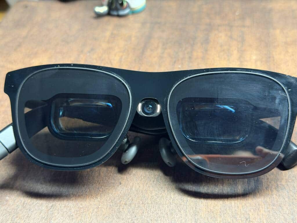 今回お借りしたXREAL One ProはMサイズ。重量は87gで装着感は「少し重めのサングラス」といった印象で、過去に試したAirと近い感覚。動作中に目頭付近がわずかに温かくなるが、Airよりも熱のこもりが抑えられており、長時間の使用でも不快感は少なかった。