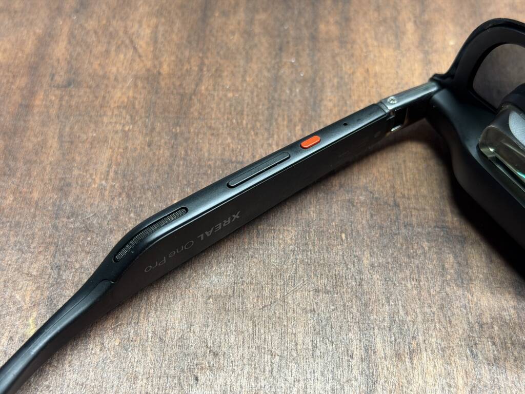 今回お借りしたXREAL One ProはMサイズ。重量は87gで装着感は「少し重めのサングラス」といった印象で、過去に試したAirと近い感覚。動作中に目頭付近がわずかに温かくなるが、Airよりも熱のこもりが抑えられており、長時間の使用でも不快感は少なかった。