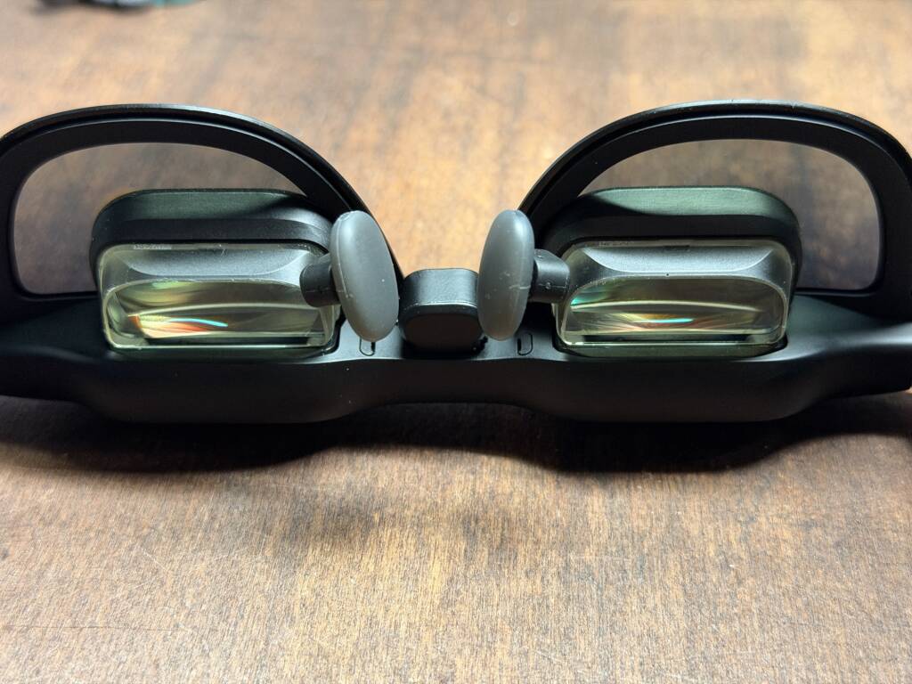 ブレ補正と高リフレッシュレート対応で酔いづらい点もびっくりした。進化したブレ補正機能により、歩行中や軽い動作時でも映像の揺れが少なく、酔いにくいAR体験を実現。寝室でゴロゴロしながら映画を見たりする場面でも酔いにくく、目も疲れにくくなった。実用的なレベルに進化したと感じた。